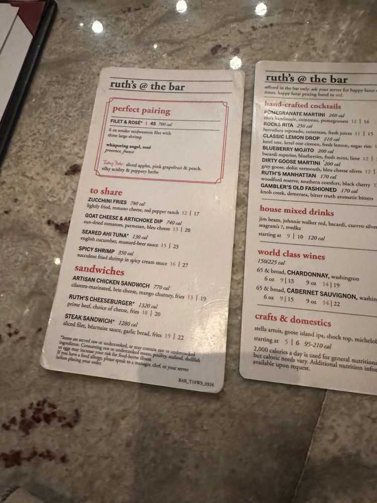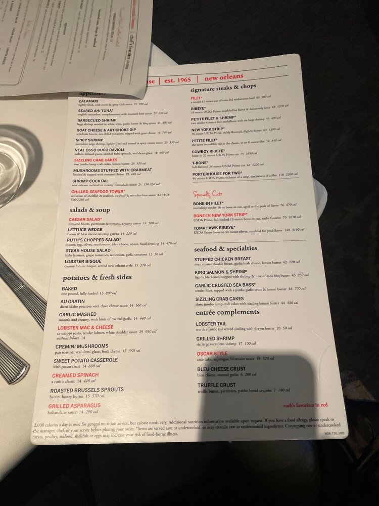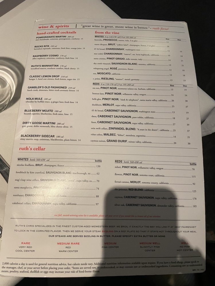 Ruth's Chris Steak House CA Menu